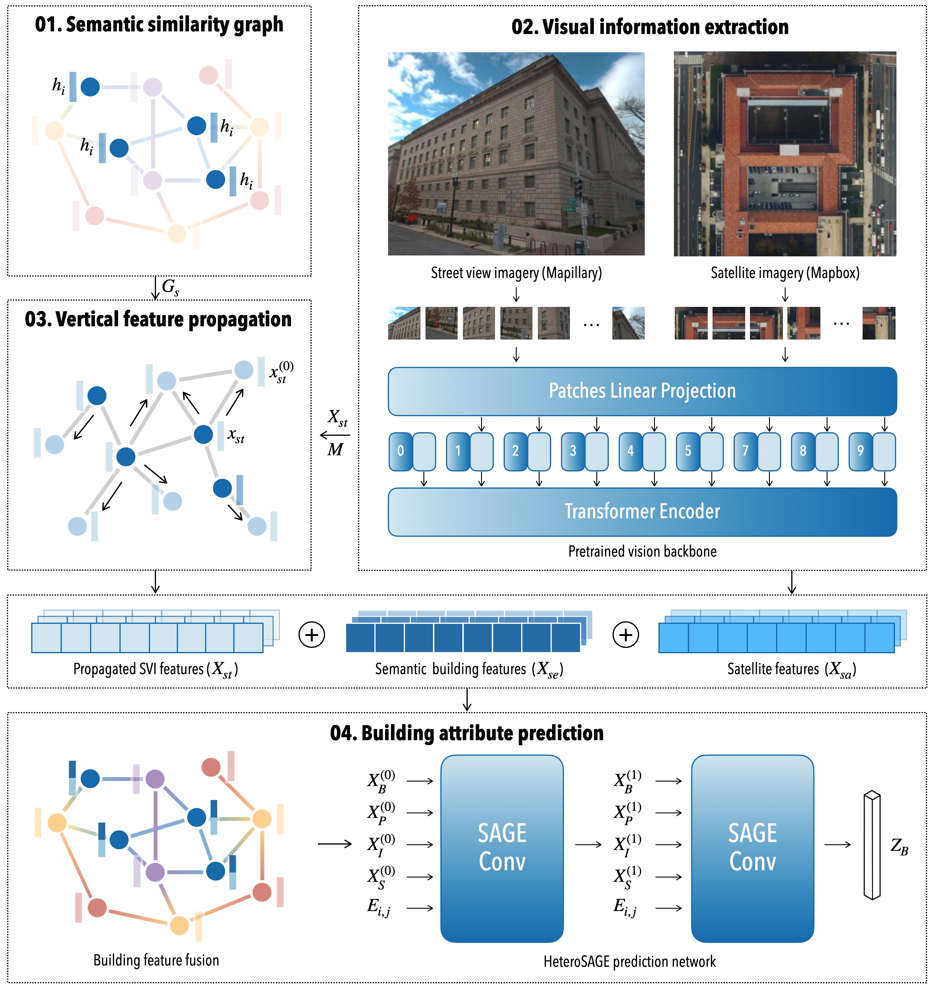 Paper: Heterogeneous graph neural networks for building attribute prediction from hierarchical urban features and cross-view imagery